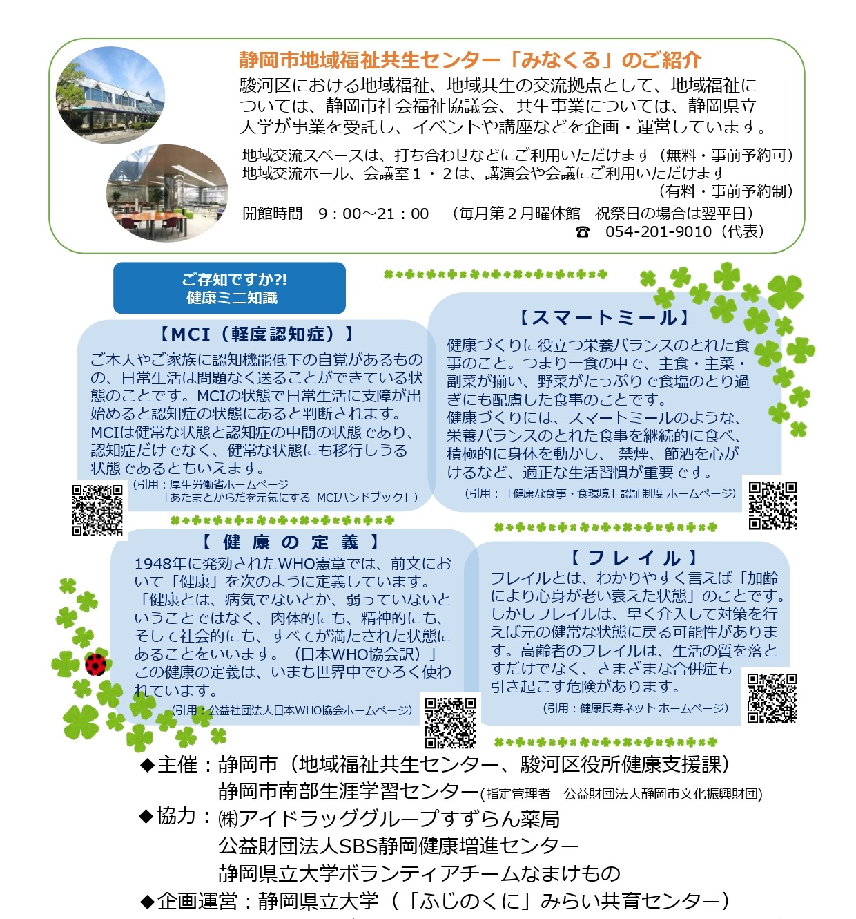 静岡市地域福祉共生センター「みなくる」(駿河区南八幡町3-1南部図書館2階)で実施されました。